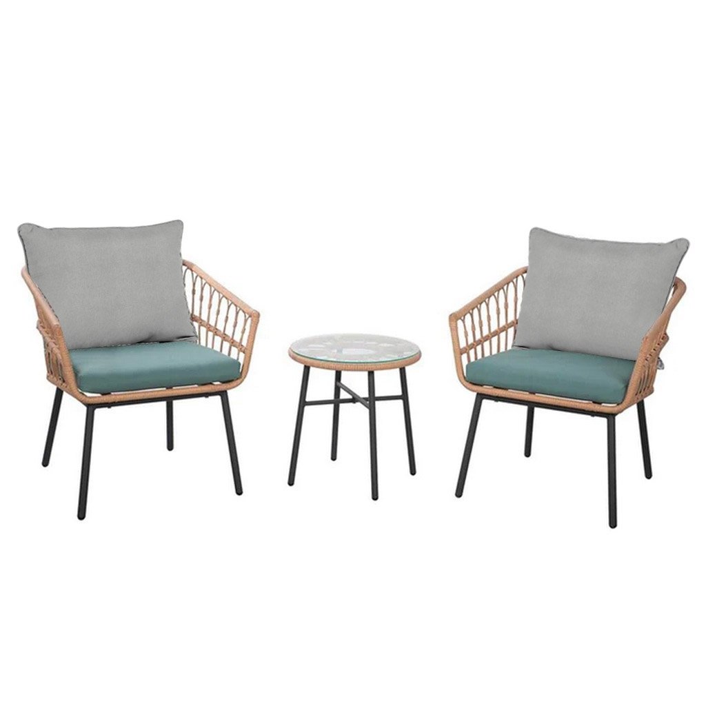طقم أثاث خارجي 3 قطع حديد و رتان